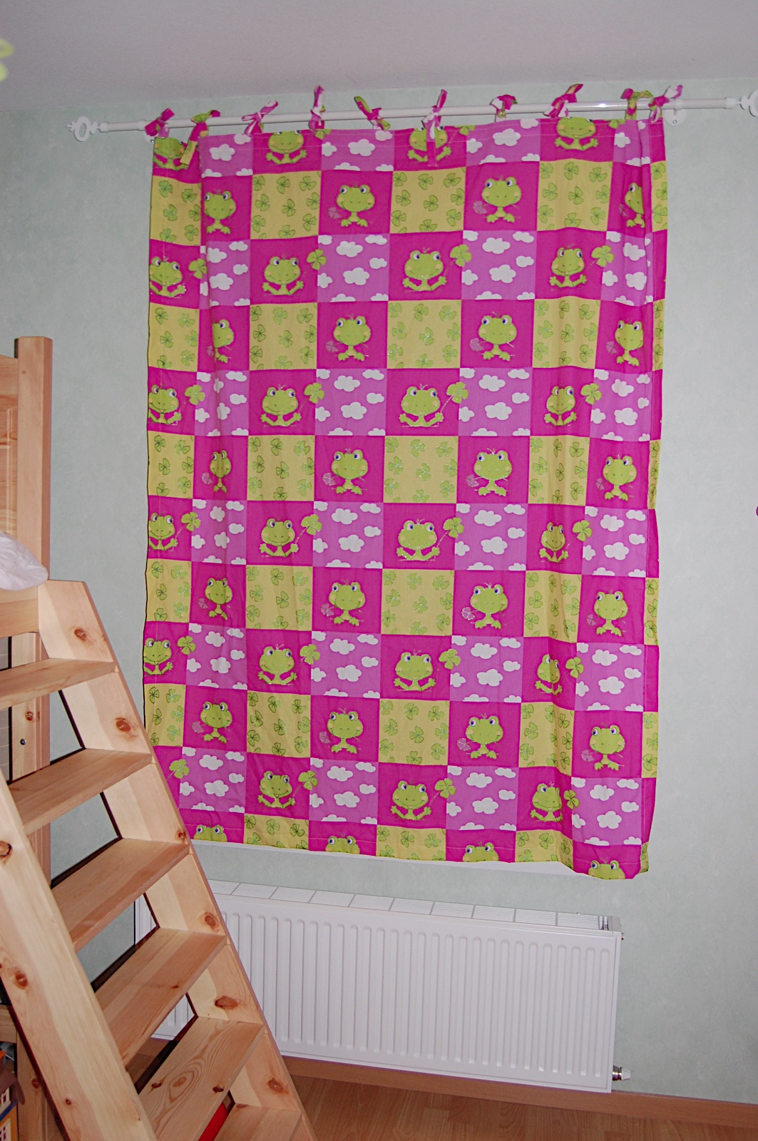 Maëline et Élise 2 de mes petites filles, ont changées de maison et donc de chambre…Et ce sont mes grenouilles préférées qui ornent la fenêtre…